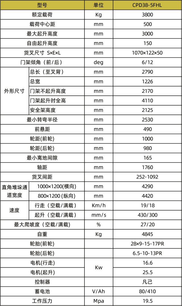 CPD38-5FHL锂电池电动叉车